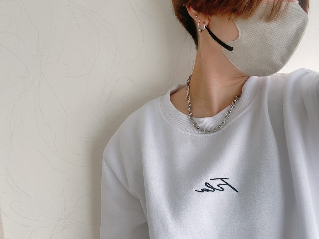 この日は、推しのSUGAが付けていた太幅のゴツめネックレスとフープピアスをまねてコーディネートしてみました!
