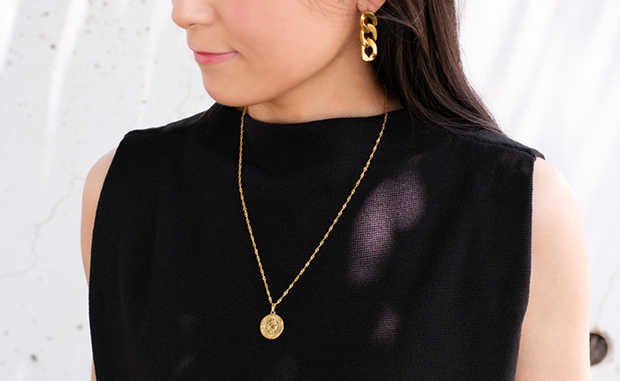 ユニセックスデザインで男女共に着用しやすい「コインモチーフ」のアクセサリー