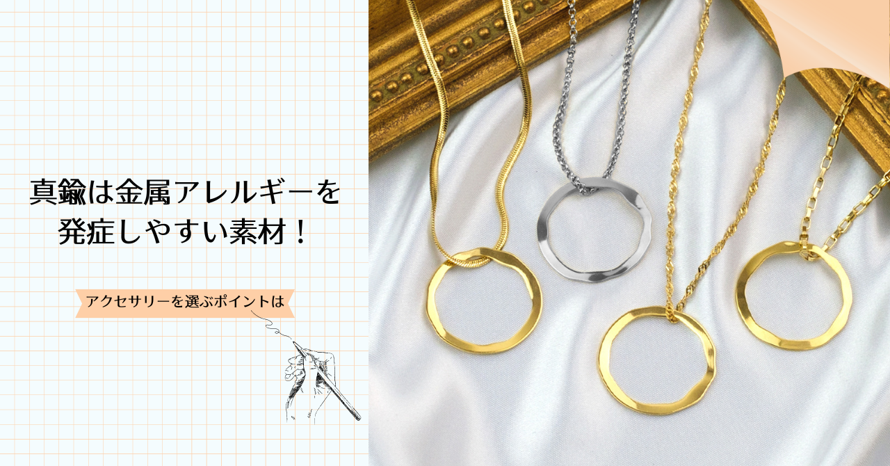 アクセサリーは肌に常時触れているものが多いため、金属アレルギーを発症しやすい素材はおすすめできません。